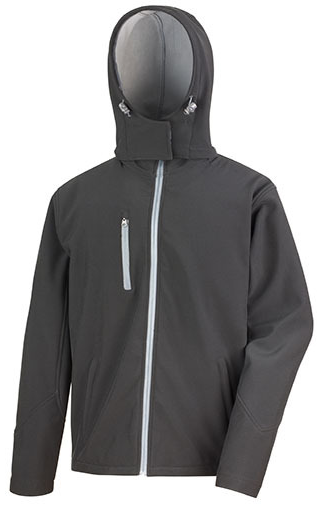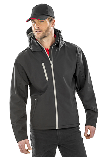 Result Softshell Hooded - Består av 3-lagers bundet tyg som är vattentätt 8000mm, andningsbart 1000g & vindtätt TPU-membran. Jackan har en avtagbar och en justerbar huva. Mikrofleecen som jackan har, den ger lite extra värme. I stort sett så är jackan bekväm och komfortabel, den har en mjuk stretch och en bekväm skärning. Material: 93% Polyester & 7% Elastan.