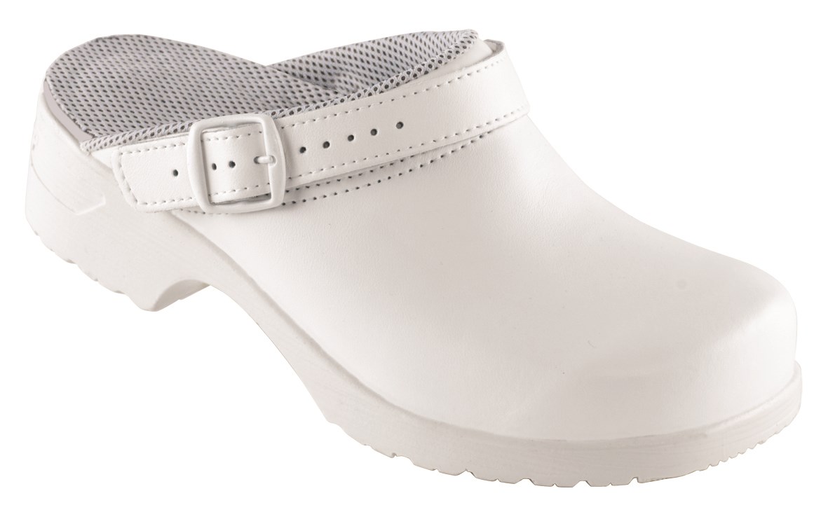 Mjuktoffel med hälrem, med svängbar hälrem och sidoperforering. Ovandelen är i spaltskinn fotbädden är tillverkade av Cambrelle för den ultimata komforten. Certifierad enligt: EN ISO 2047:2012 O E A SRC
