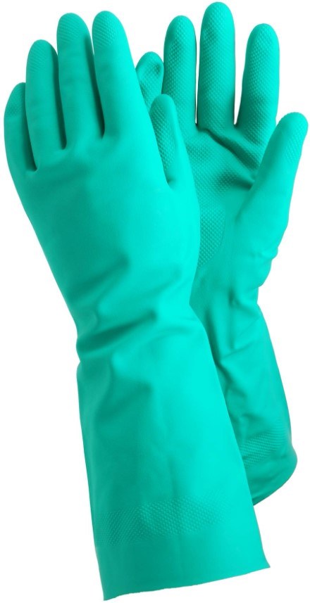Kemikaliehandske 48 - En extra lång kemikaliehandske som är ett bra skydd mot kemikalier. Den är bland annat godkänd för mathantering och den är även latexfriu. Handsken är godkänd enligt: EN 420:2003+A1:2009 / EN 388:2016 4102X / EN ISO 374-1:2016/TYPE A AJKLOP / EN ISO 374-5:2016/VIRUS. Tålig mot batterisyra i kortare stunder och till vissa andra kemikalier i vätskeform. När kemikaliehandsken har använts kan den ge sämre skydd mot den farliga kemikalien på grund av förändringar i handskens fysikaliska egenskap. Innan användning av produkten kontrollera att den inte är defekt eller skadad.