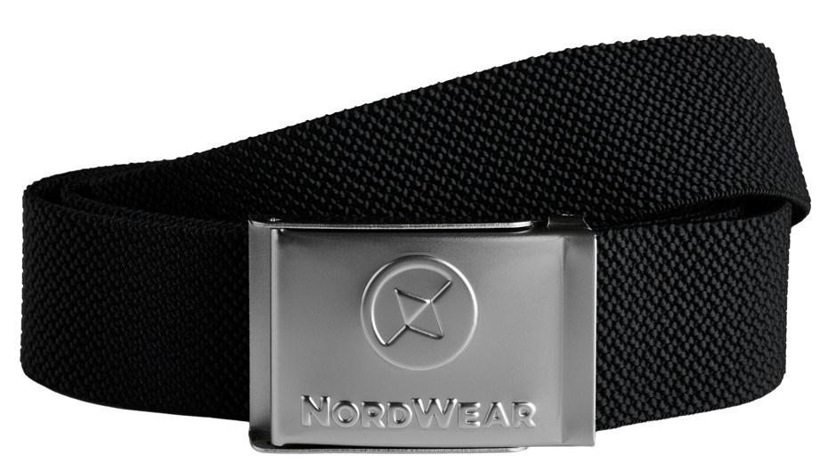 Black stretch belt with adjustable metal buckle. Nordwear logo on the buckle. Width 40mm. One Size