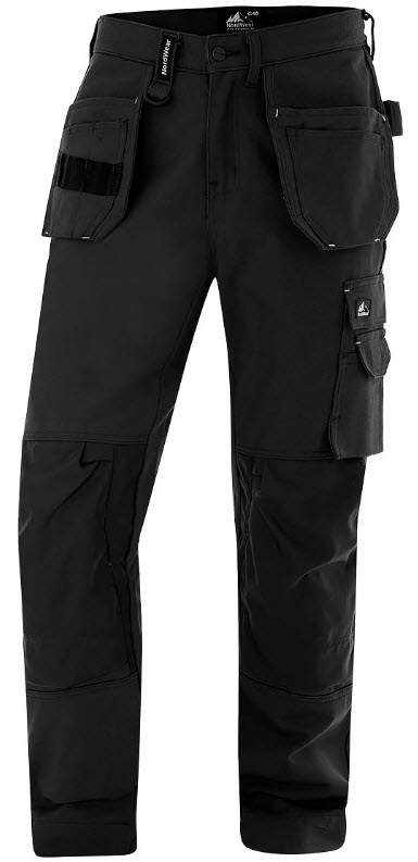 Nordwear hantverksbyxa, består av två löst hängande CORDURA -förstärkta spikfickor. Benficka med bälg, Mobilficka, ID-kortsficka, Tumstocksficka med bälg, dubbel knivhållare, Pennficka, Två bakfickor med bälg. CORDURA -förstärkta knäskyddsfickor, Två