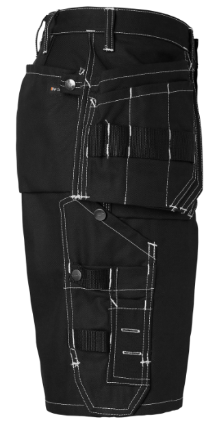 Topswede Shorts 194 - Praktiska och hållbara hantverksshorts med löst hängande spikfickor förstärka med CORDURA . De har flera fickor för verktyg och tillbehör, inklusive tumstocksficka med knivhållare och pennfack, samt en stor benficka med telefonf