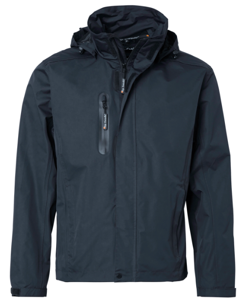 Skaljacka, både vind och vattentät, dessutom med andasfunktion. Sömmarna är tejpade för att förhindra fukt att tränga igenom. Designen är välutvecklad och genomtänkt för bästa möjliga komfort och funktion. Den består bland annat av dold dragkedja som går hela vägen upp i kragen, bröstficka med vattentät dragkedja, framfickor med dragkedja, två innerfickor med dragkedja. Dragsko finns nedtill för bästa möjliga passform.