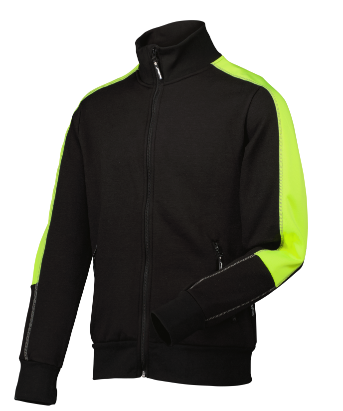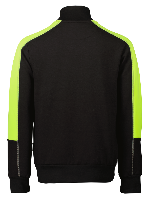 Sweatshirt med ökad synbarhet på axlarna och ärmarna, ADDVIS. Helzip, med lite högre krage. Midje och ärm muddar.