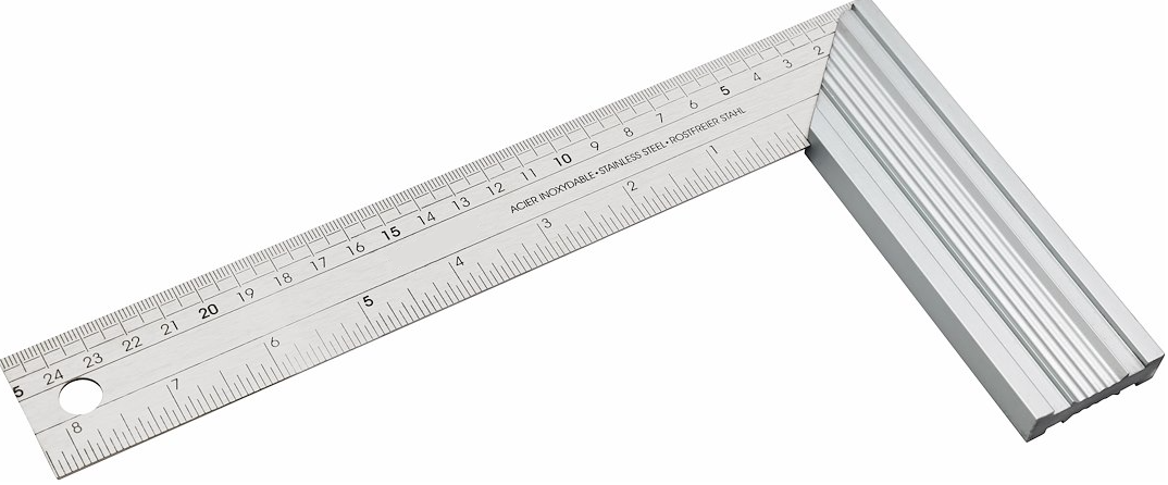 Stainless steel angle ruler, a versatile and practical solution for all your measuring needs. With a 90° and 45° angle at the blade holder, and scales in both millimeters and inches, it is perfect for precise measurements. Made of durable aluminum and stainless steel, with a hanging hole for easy storage.