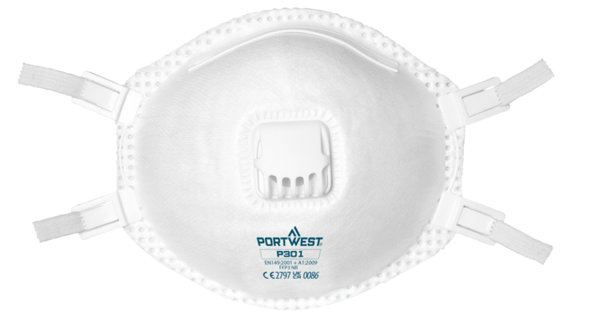 Filtrerande halvmask FFP3 (P301) ger effektivt skydd mot damm, dimma och rök. Den har ultraljudsvetsade band och inre skumpackning för komfort och täthet.