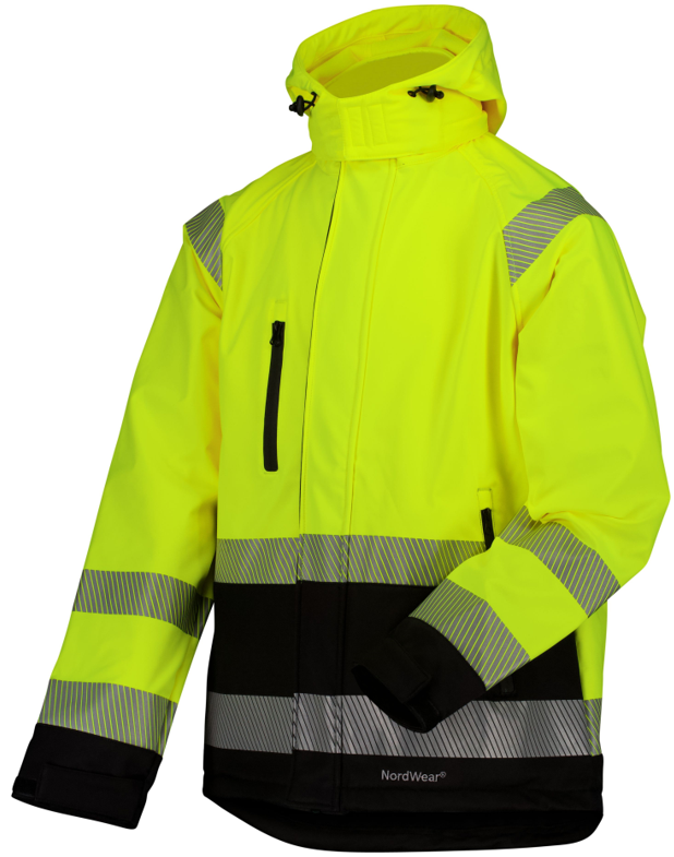 NordWear Softshelljacka varsel klass 3, en väldigt bekväm och stilig softshelljacka med yttertyg i stretch. Reflexerna är skurna för en lång livslängd. Jackan är vind och vattenavvisande och har en hög krage som skydda mot kyla. Finns gott om förvaring, bland annat två framfickor med dragkedja och två bröstfickor med dragkedja, samt en innerficka.