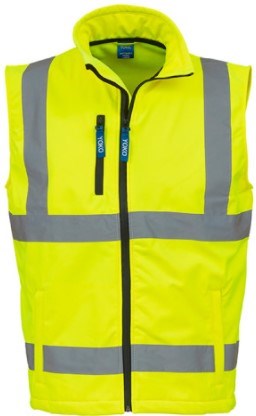 Stilig varsel softshell väst med cirka 5 cm breda reflexband, 100% vattentäta dragkedjor, 2 framfickor med dragkedja, bröstficka med dragkedja.