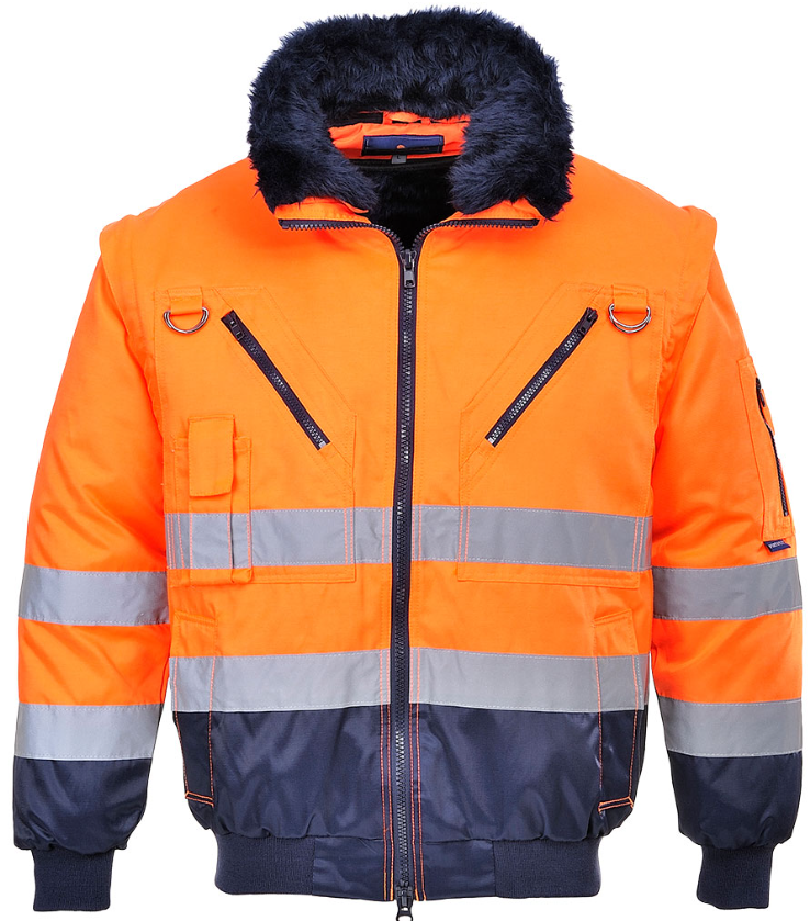 Varsel 3-i-1 vinterjacka pilot, en jacka som lämpar sig alldeles utmärkt i olika arbetsmiljöer. Den består bland annat av avtagbart pälsfoder, är behandlad och är vattenbeständig. Jackan går att använda på 3 olika sätt, speciellt eftersom innerjackan är avtagbar för flera olika väderlekar.